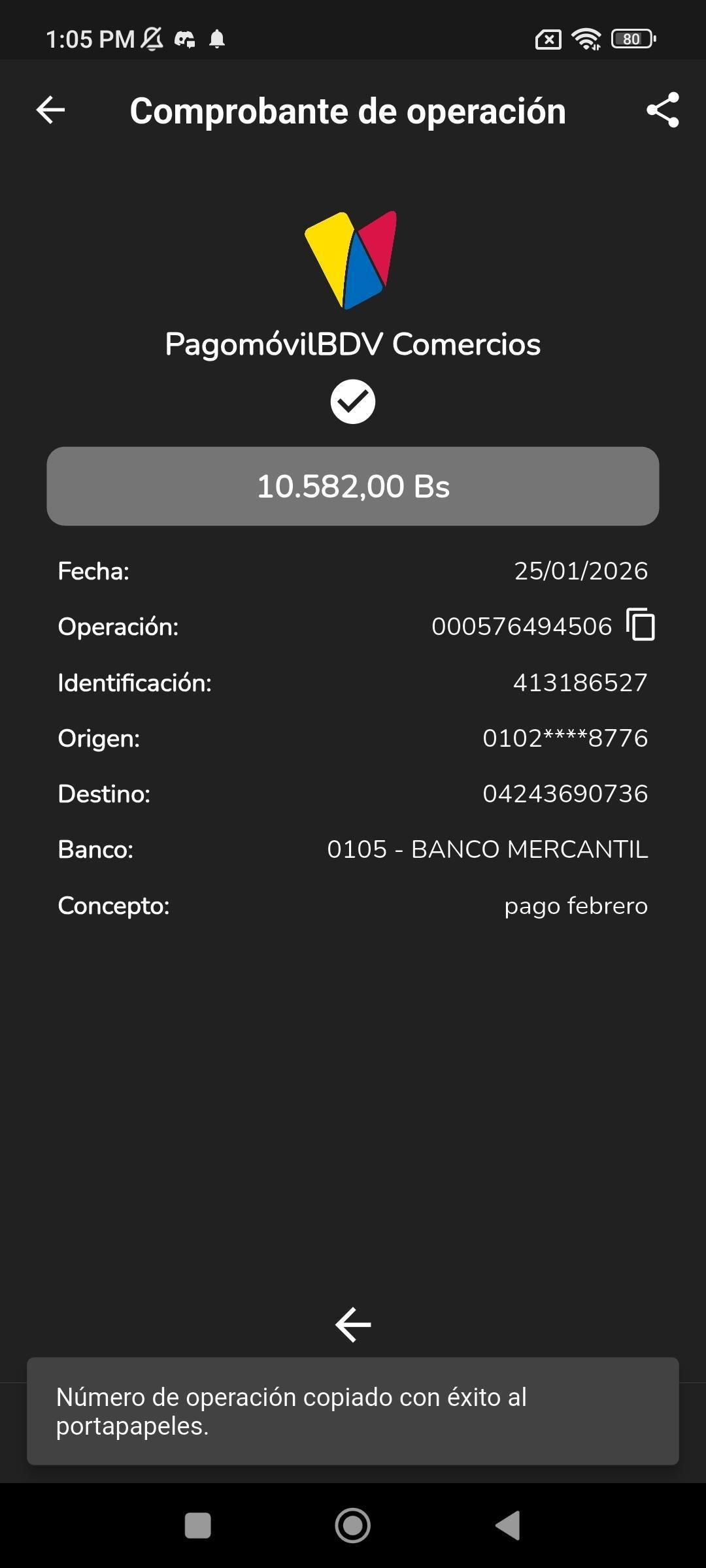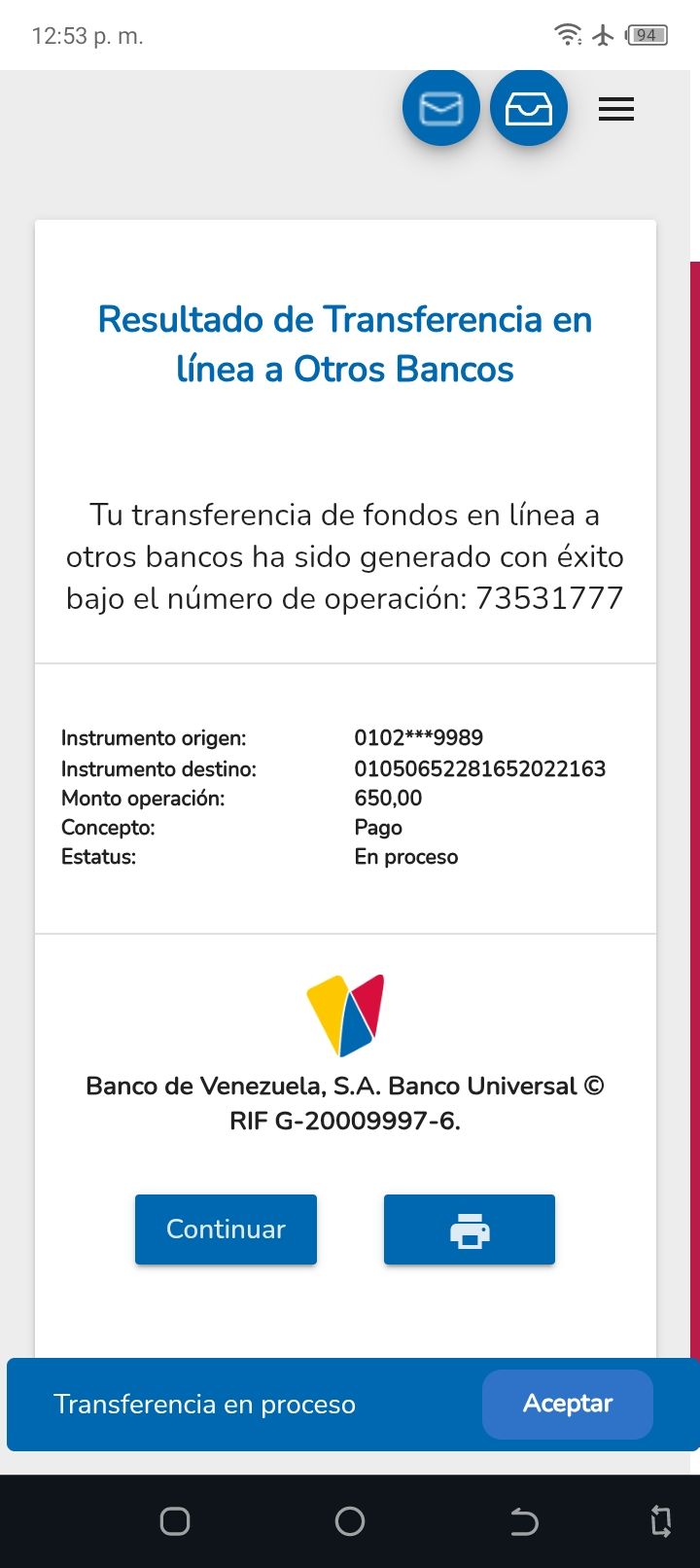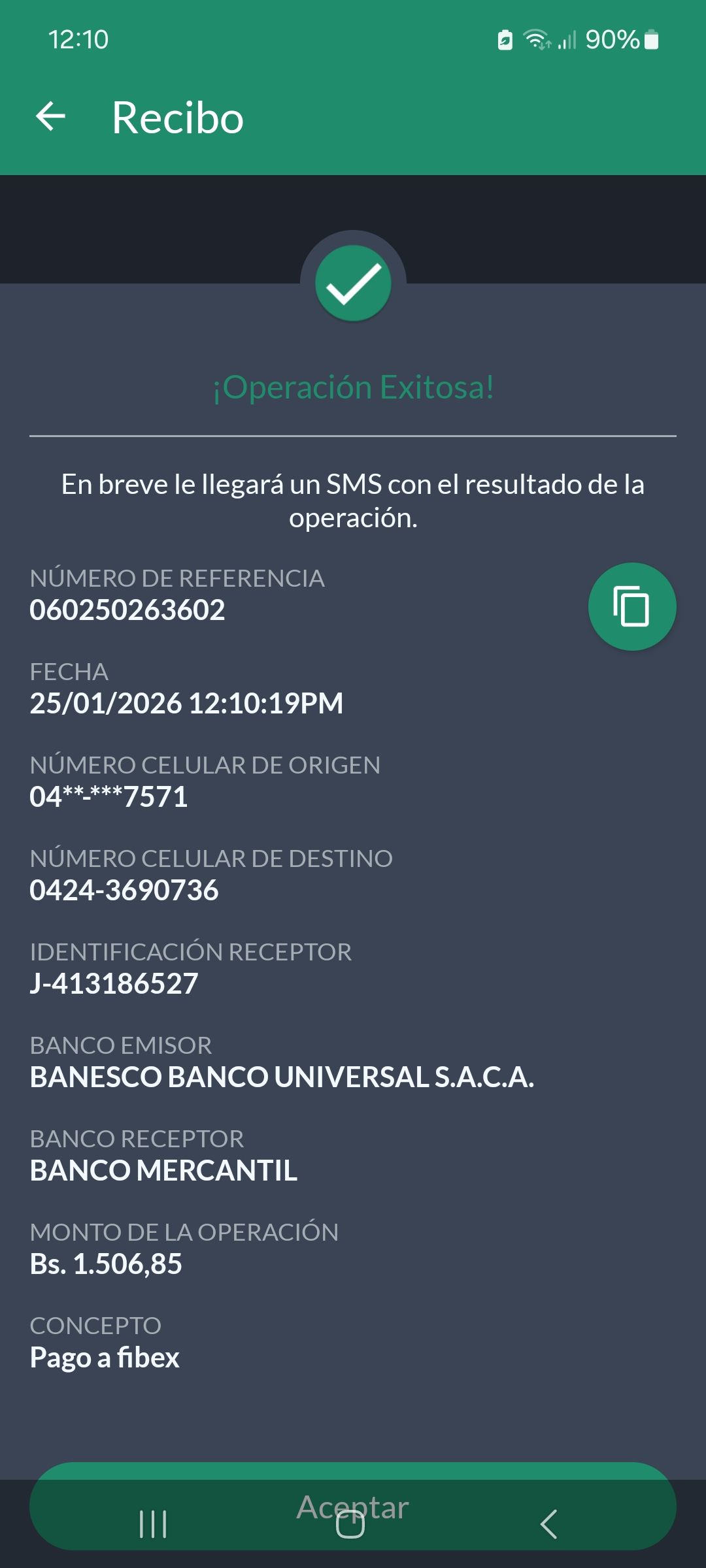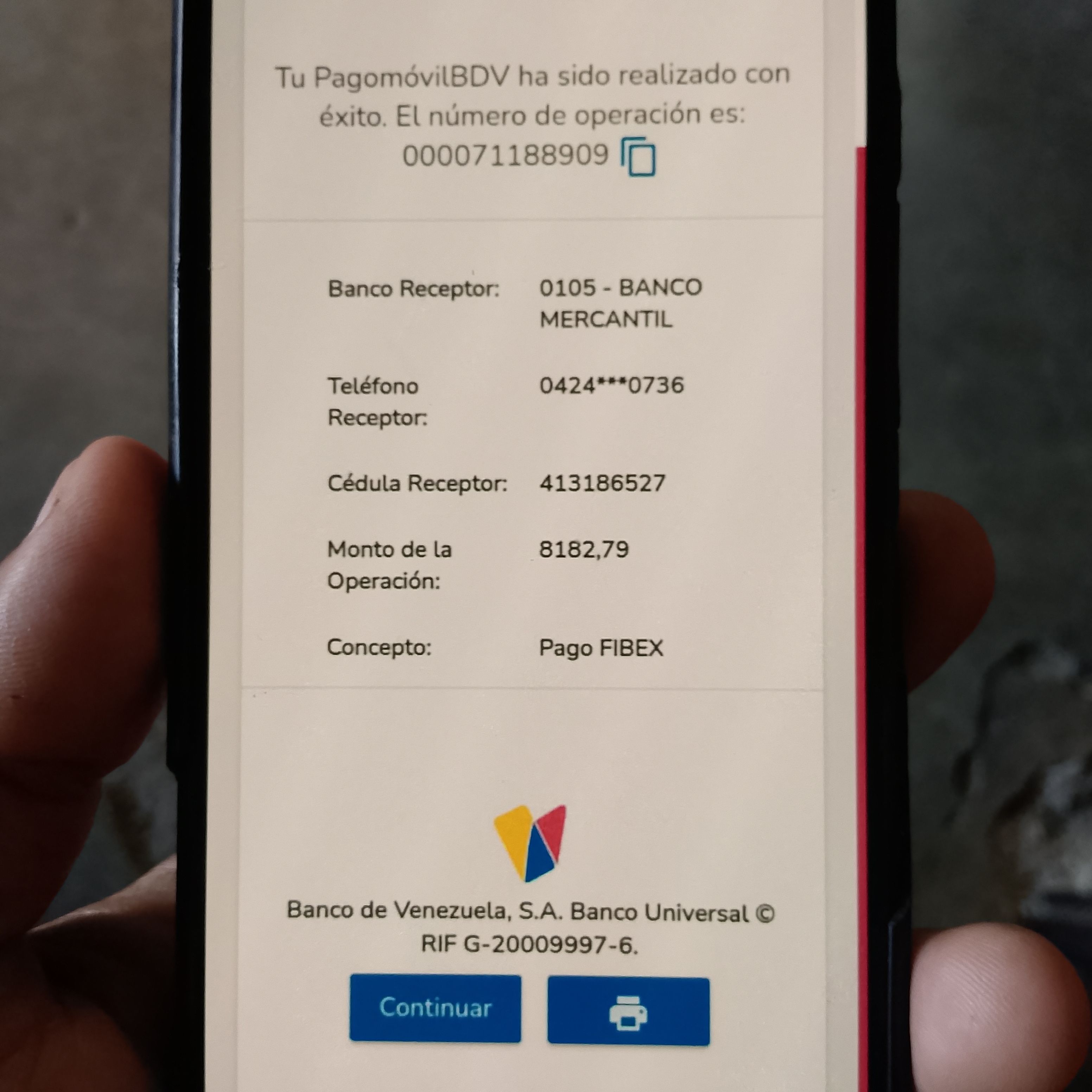 | A25227 | FRANCISCO JOSE VASQUEZ VERA | 2026-01-23 | MERCANTIL 2163 | 000000744264 | | 4,520.55 BS | 301.37 | REGISTRADO |