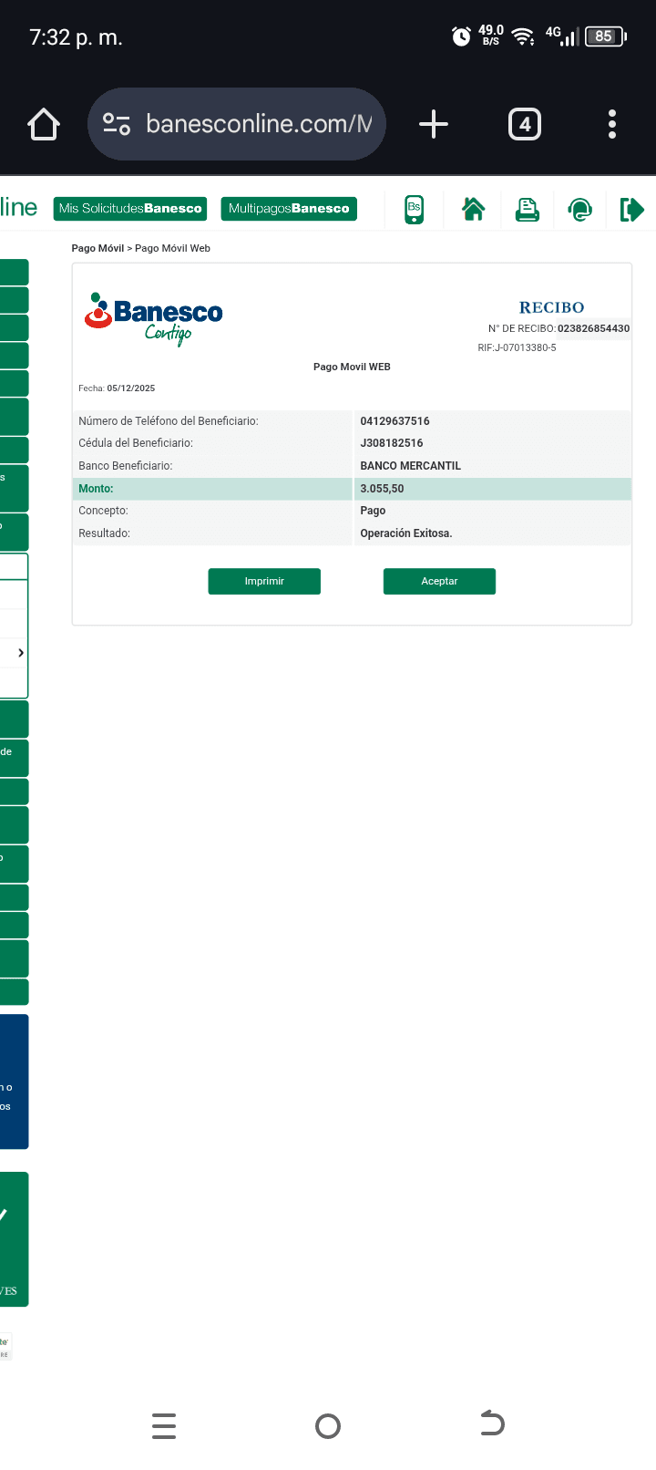 | A55842 | JOSE ANTONIO LOPEZ VENTAS CALLE ARAGUA | 2025-12-05 | MERCANTIL-4381-ARAGU | 1053690 | | 7,247.34 BS | 247.30 | REGISTRADO |