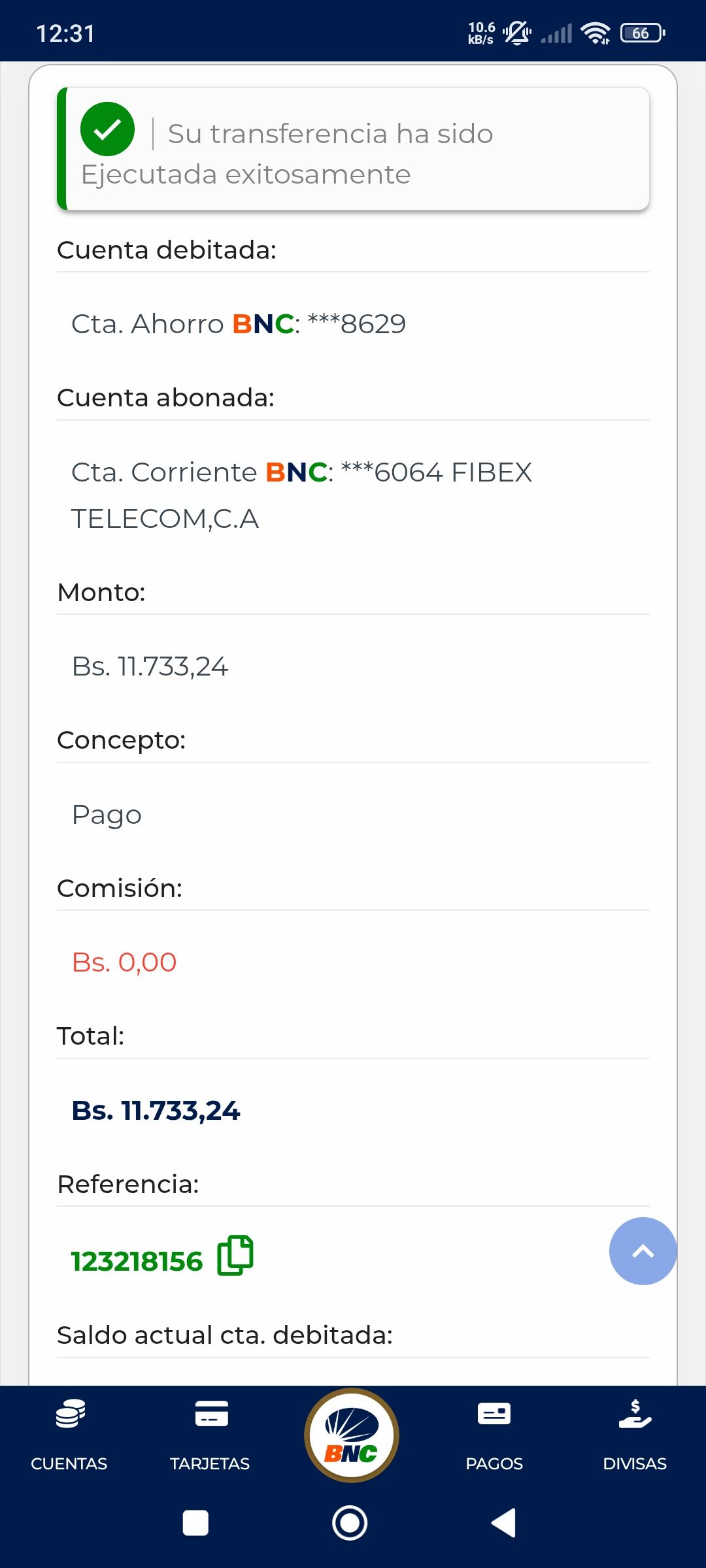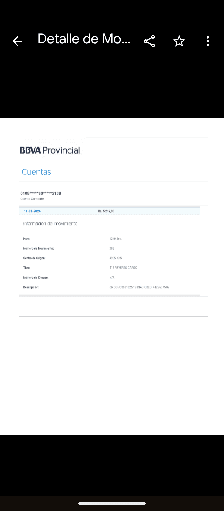 | BQ17407 | RAFAEL SIMON GIL GIL | 2026-01-11 | BNC 2614 | 00000282 | | 5,212.00 BS | 301.37 | REGISTRADO |