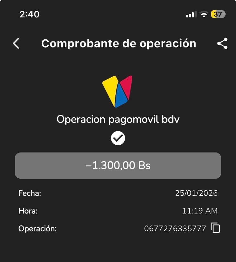 | T1629 | CRISARIDA JOSEFINA BARONA PEREZ | 2026-01-25 | MERCANTIL 2163 | 8542078542 | | 9,300.00 BS | 301.37 | REGISTRADO |