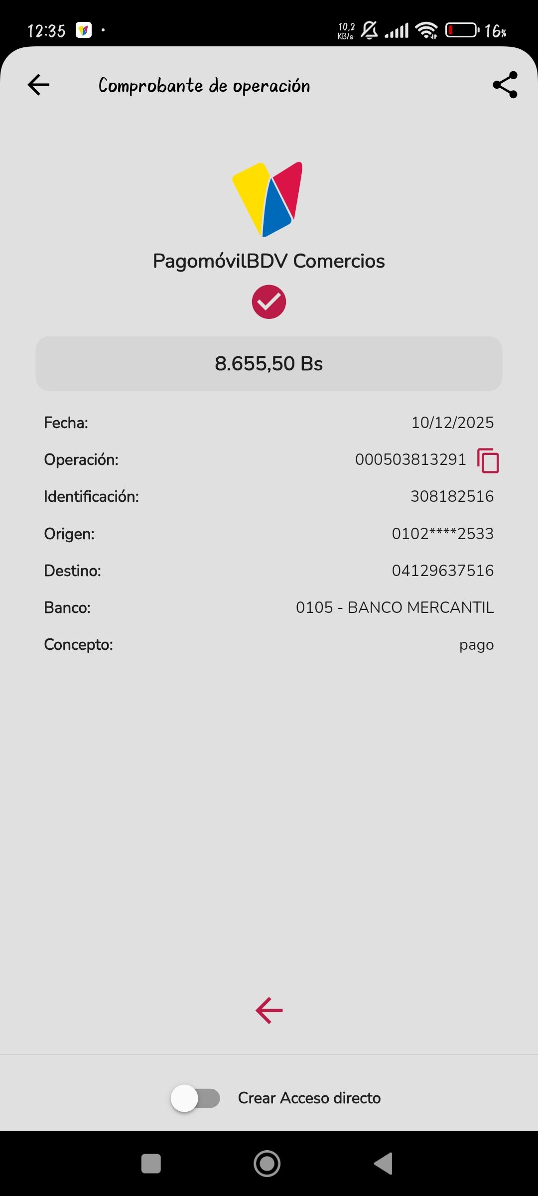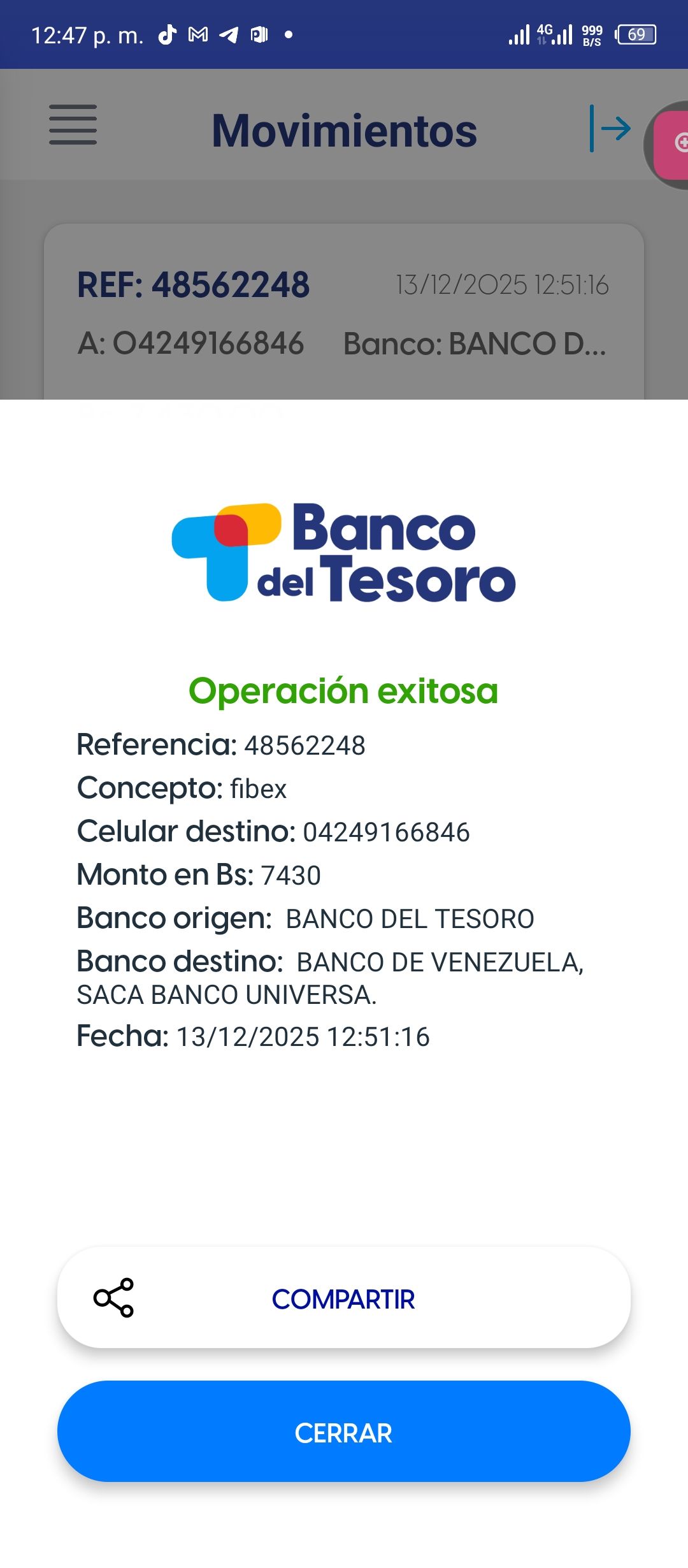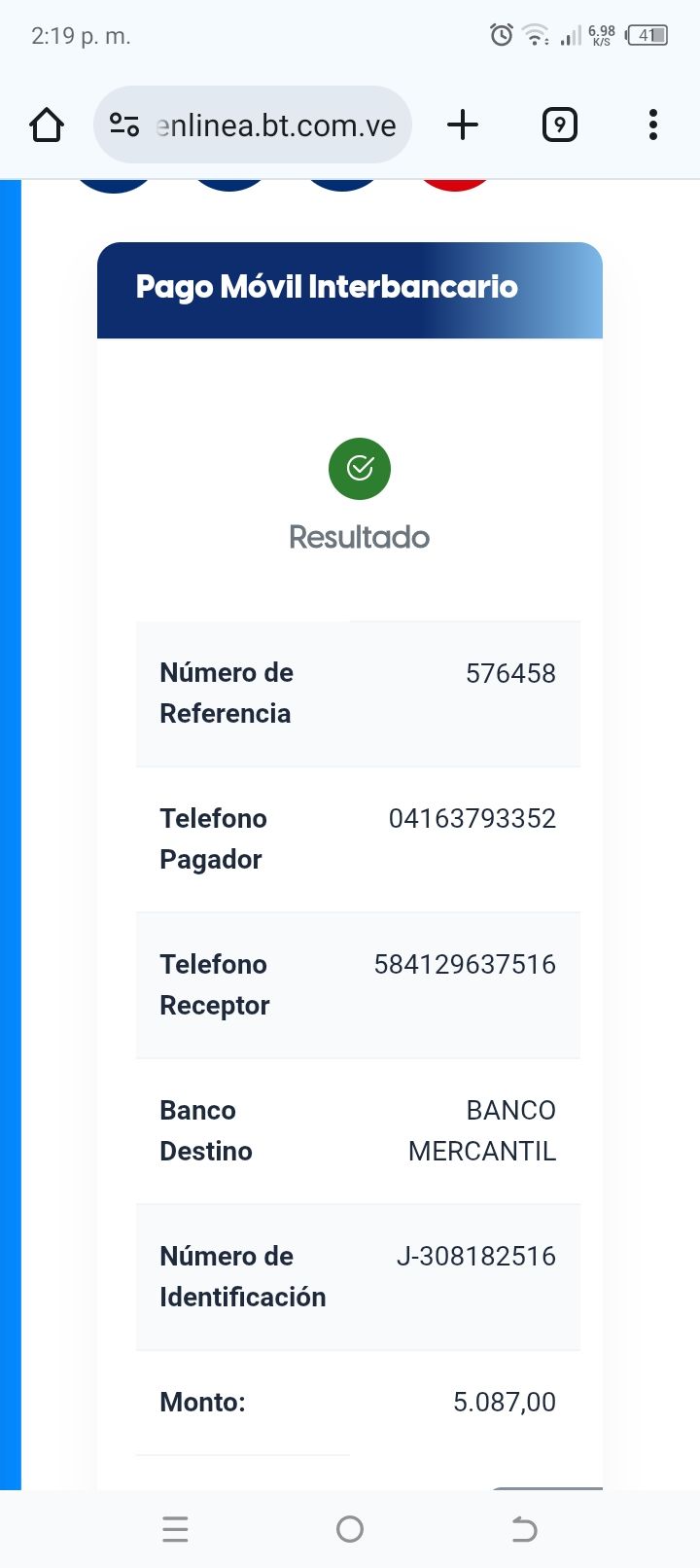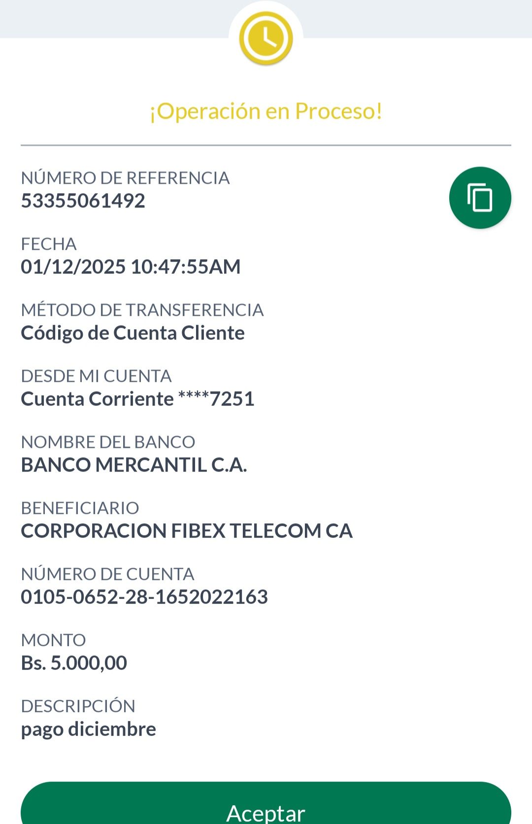| BQ8450 | CARMEN ALICIA CORDERO RODRIGUEZ | 2025-12-13 | MERCANTIL 2163 | 58576458 | | 5,084.00 BS | 247.30 | REGISTRADO |