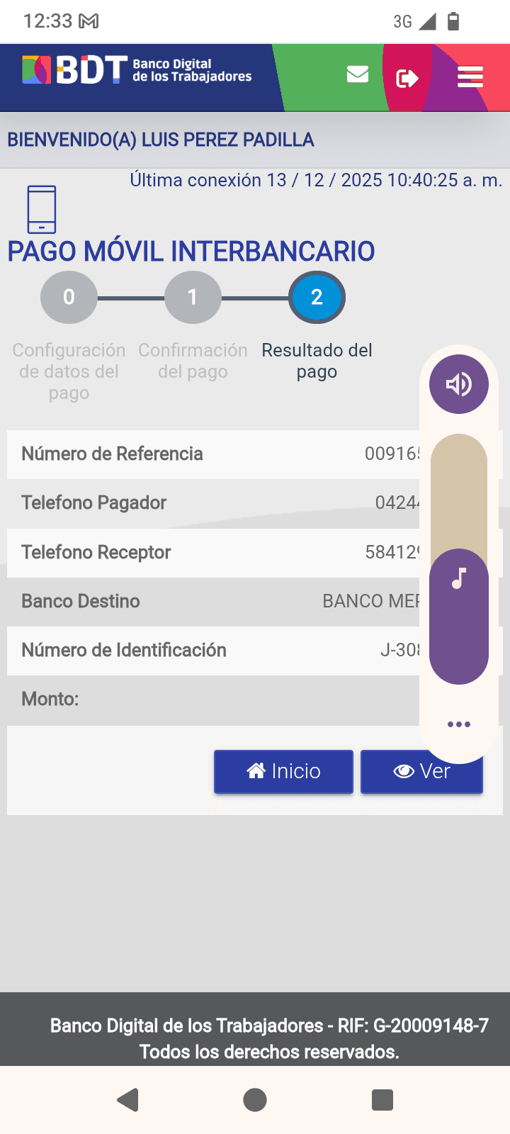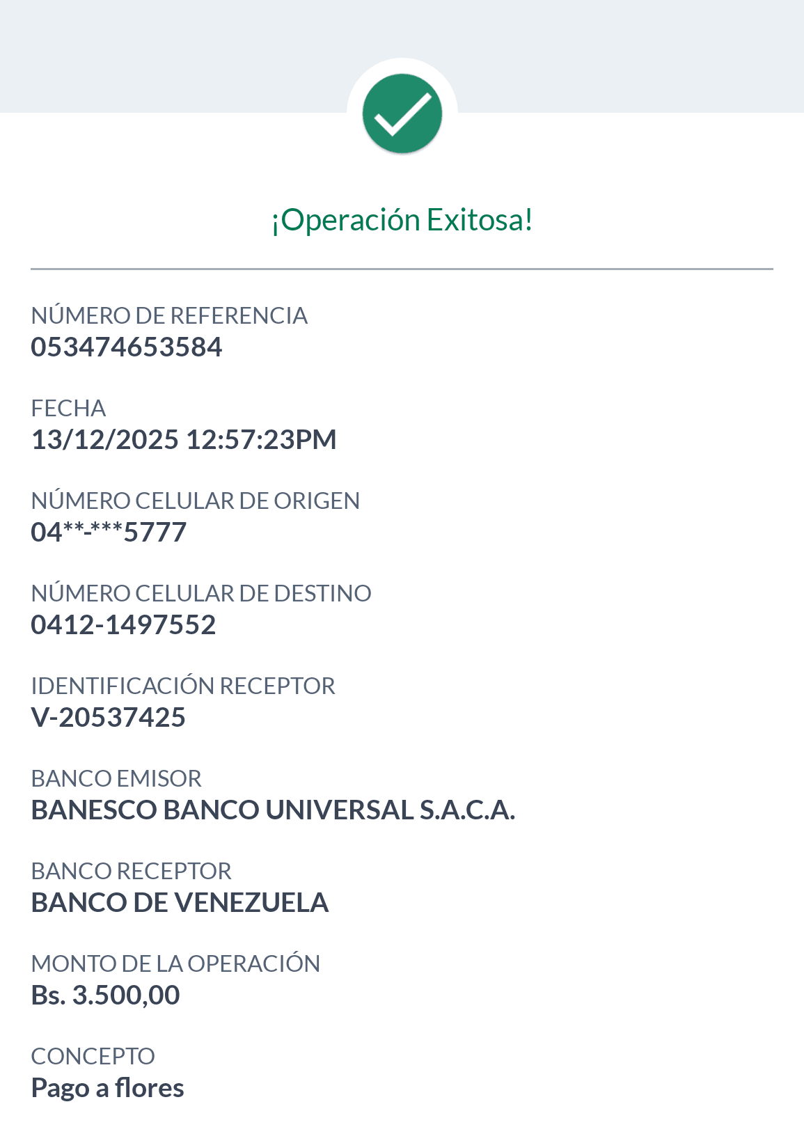 | LCH33481 | RAMIRO JONAS RODRÍGUEZ MILLAN | 2025-12-13 | MERCANTIL 2163 | 053474653584 | | 3,500.00 BS | 247.30 | REGISTRADO |