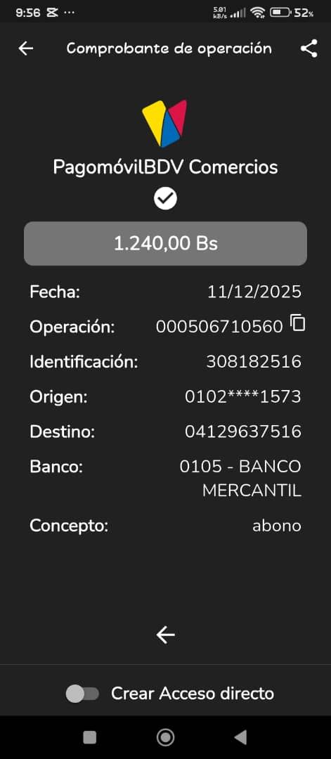 | BQ3511 | JHONNY JOSE NARANJO NOGUERA | 2025-12-13 | MERCANTIL 2163 | 52022163 | | 6,179.07 BS | 247.30 | REGISTRADO |