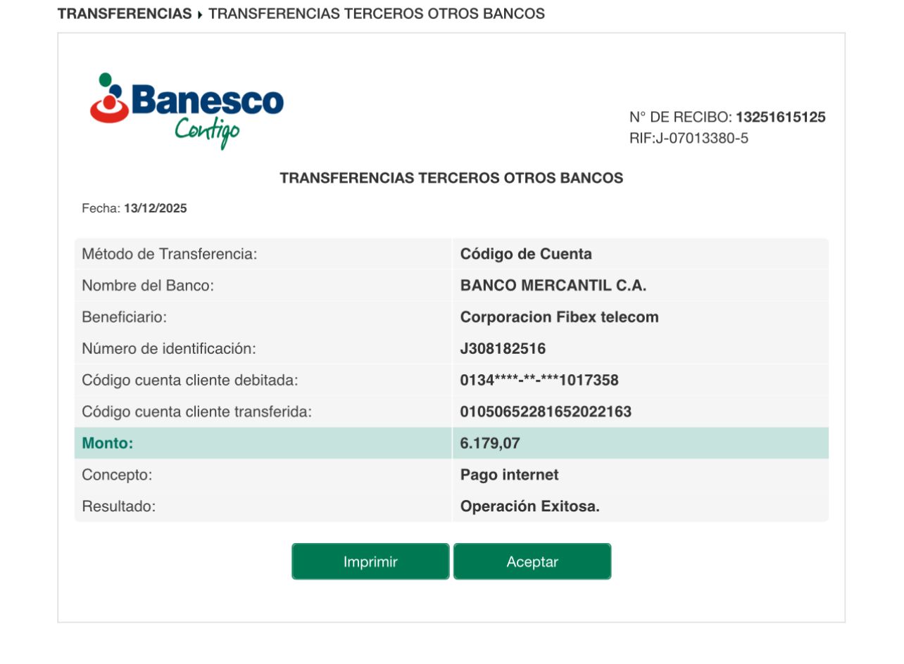 | V105483 | JORGE LUIS RAMIREZ AGUIAR | 2025-12-13 | MERCANTIL 2163 | 00050990281 | | 5,890.54 BS | 247.30 | REGISTRADO |