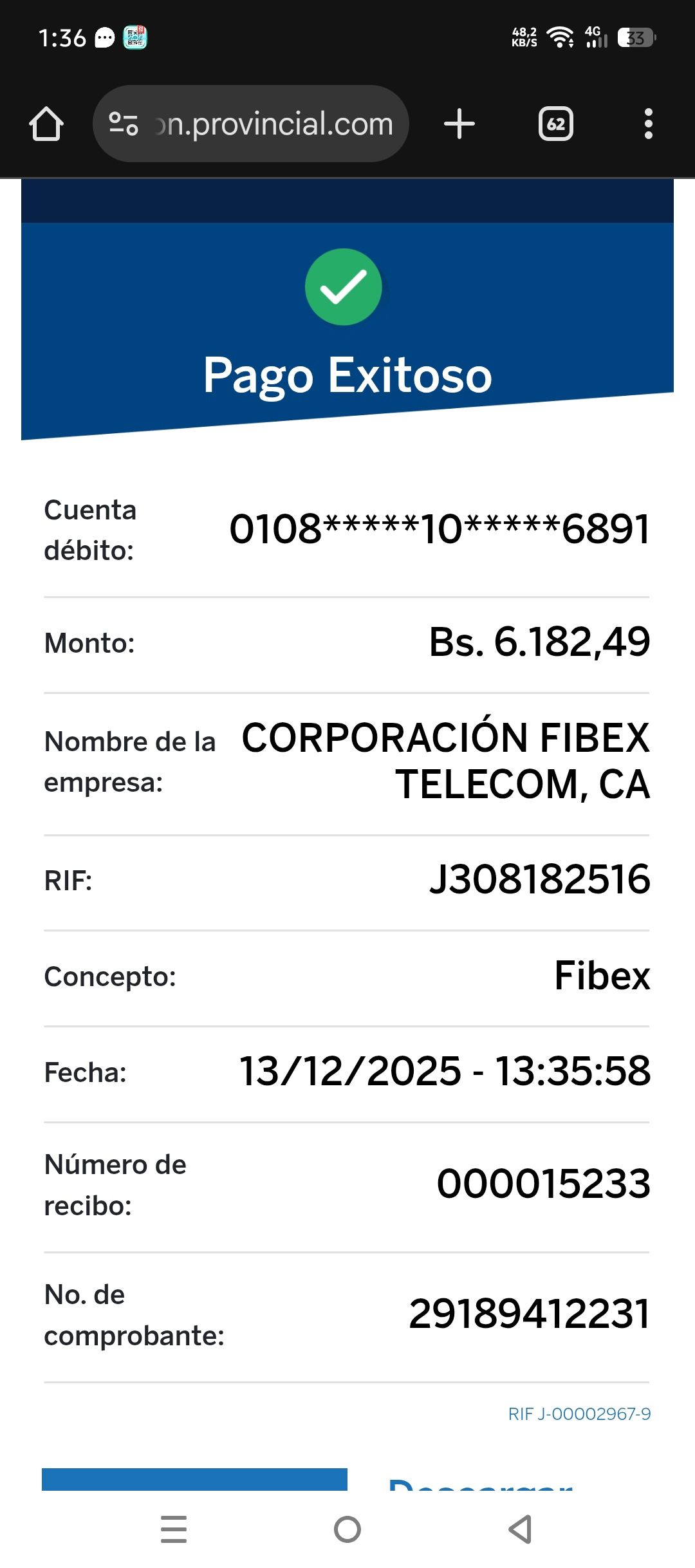| V93046 | ANTHONY ALFREDO FIGUEREDO FLORES | 2025-12-13 | MERCANTIL 2163 | 53475629330 | | 7,419.00 BS | 247.30 | REGISTRADO |