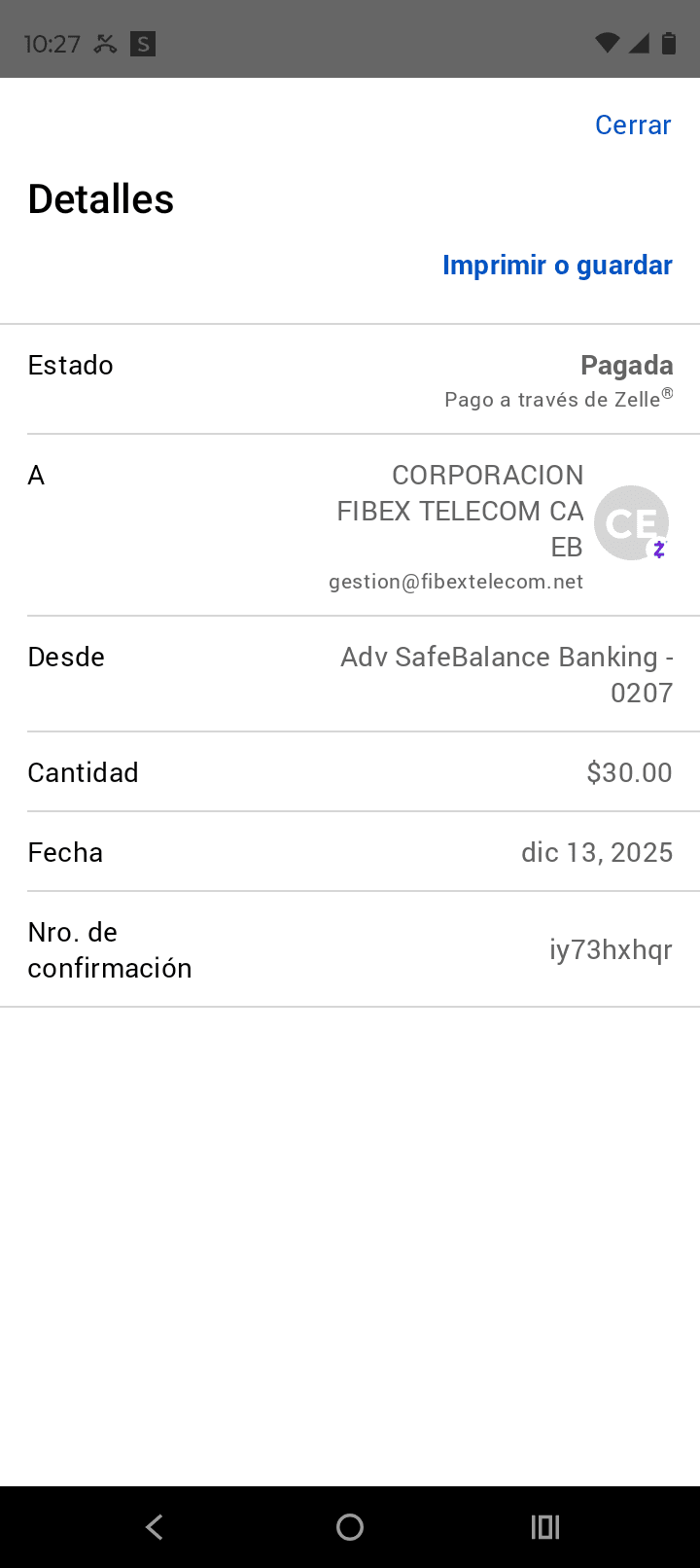 | SC1113 | FRANCELYS MARIA COLMENARES SEIJAS | 2025-12-13 | MERCANTIL 2163 | 76246654 | — | 182.00 BS | 247.30 | REGISTRADO |