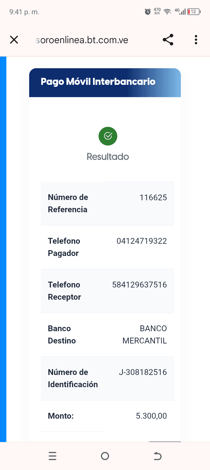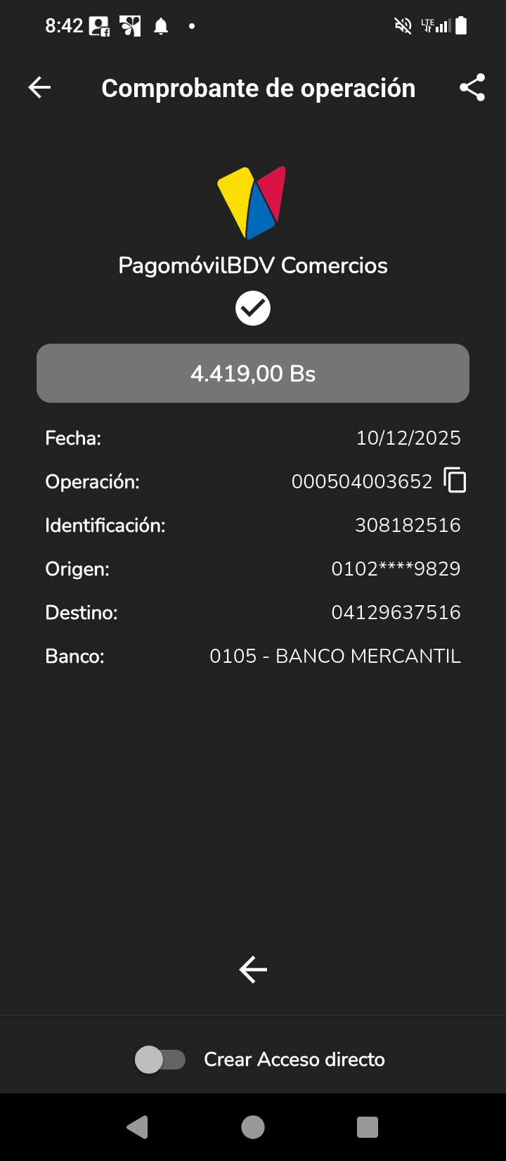 | BQ32528 | EDMUNDO RAFAEL BRIZUELA SEVILLANO | 2025-12-10 | MERCANTIL 2163 | 00042532 | — | 4,946.00 BS | 247.30 | REGISTRADO |