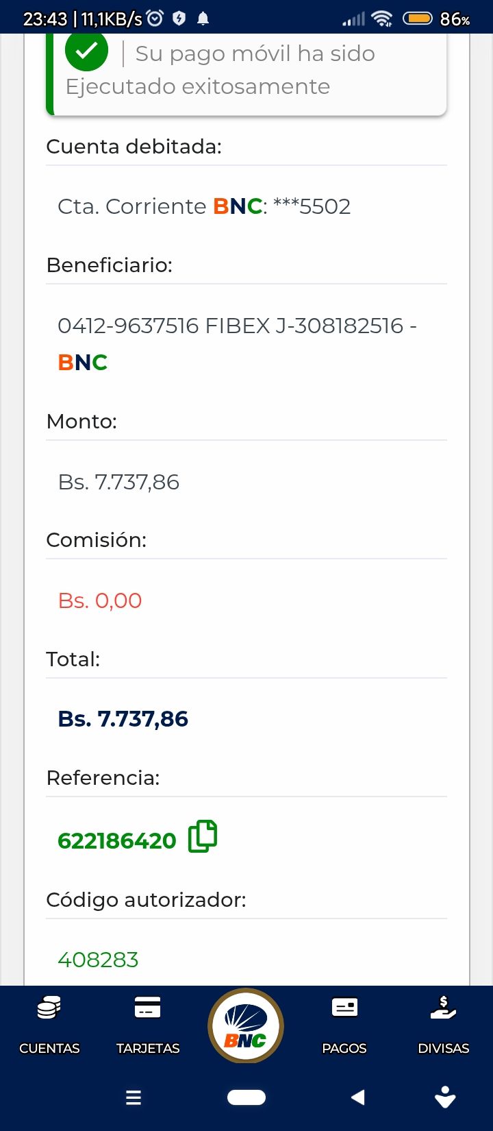 | SJ0349 | FERNANDO JAVIER MARTINEZ CASARES | 2025-12-06 | BNC 2614 | 00014353 | | 7,419.00 BS | 247.30 | REGISTRADO |