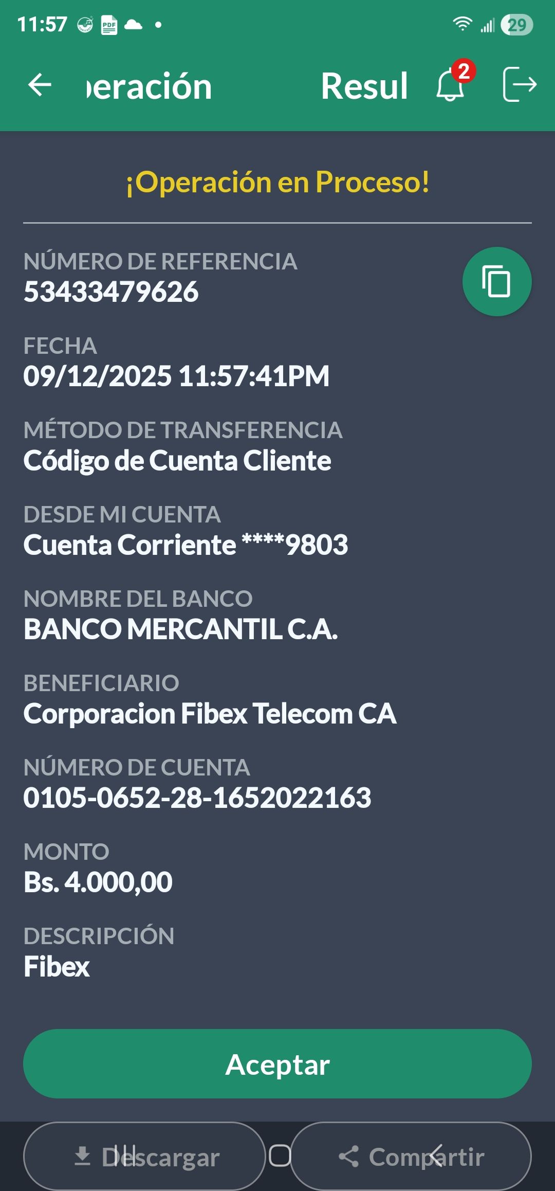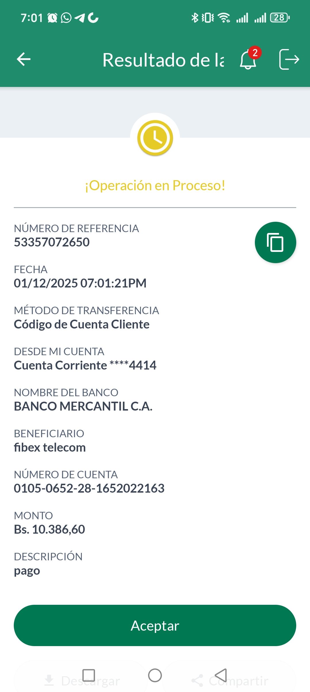 | V68163 | JUAN COUSIN COUNET SOLUTIONS ALIADO COMERCIAL | 2025-12-10 | MERCANTIL 2163 | 00332189 | | 11,870.40 BS | 247.30 | REGISTRADO |