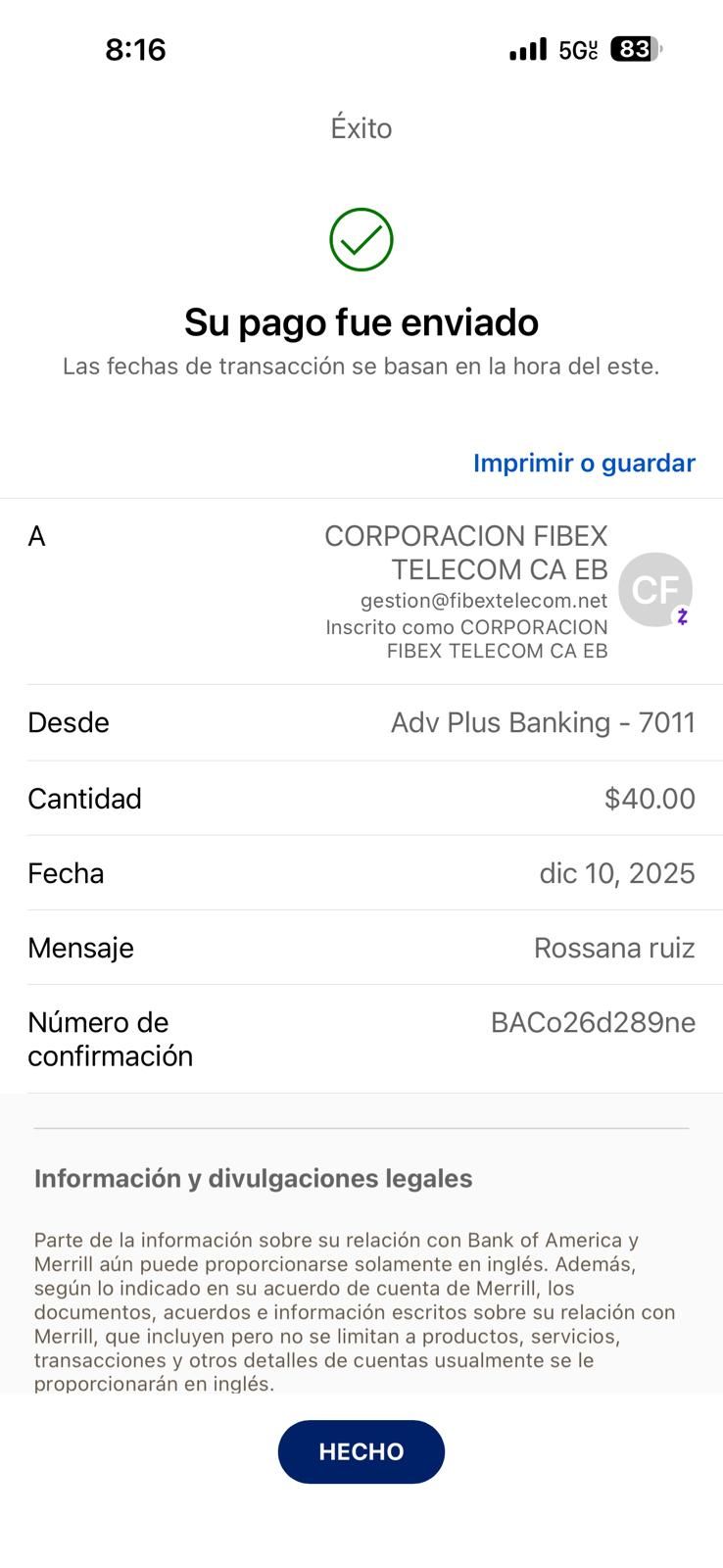 | SC10507 | ADAILI BENIGNA MOLERO SUAREZ | 2025-12-10 | BANESCO USA 1829 | BACRB617TBH5 | | 30.00 BS | 1.00 | REGISTRADO |
