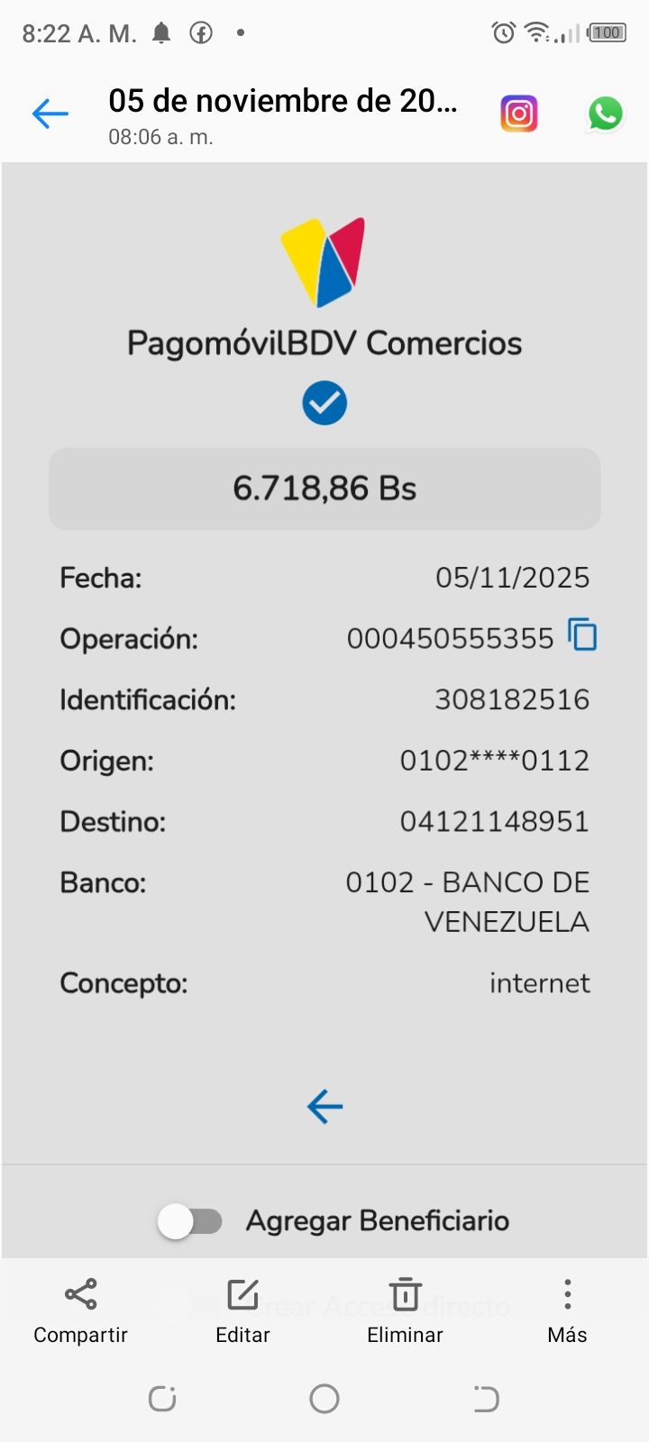 | SJ3598 | NOHEMI YASMIR BLANCO FIGUEREDO | 2025-12-05 | MERCANTIL 2163 | 96850041 | | 100.00 BS | 247.30 | REGISTRADO |