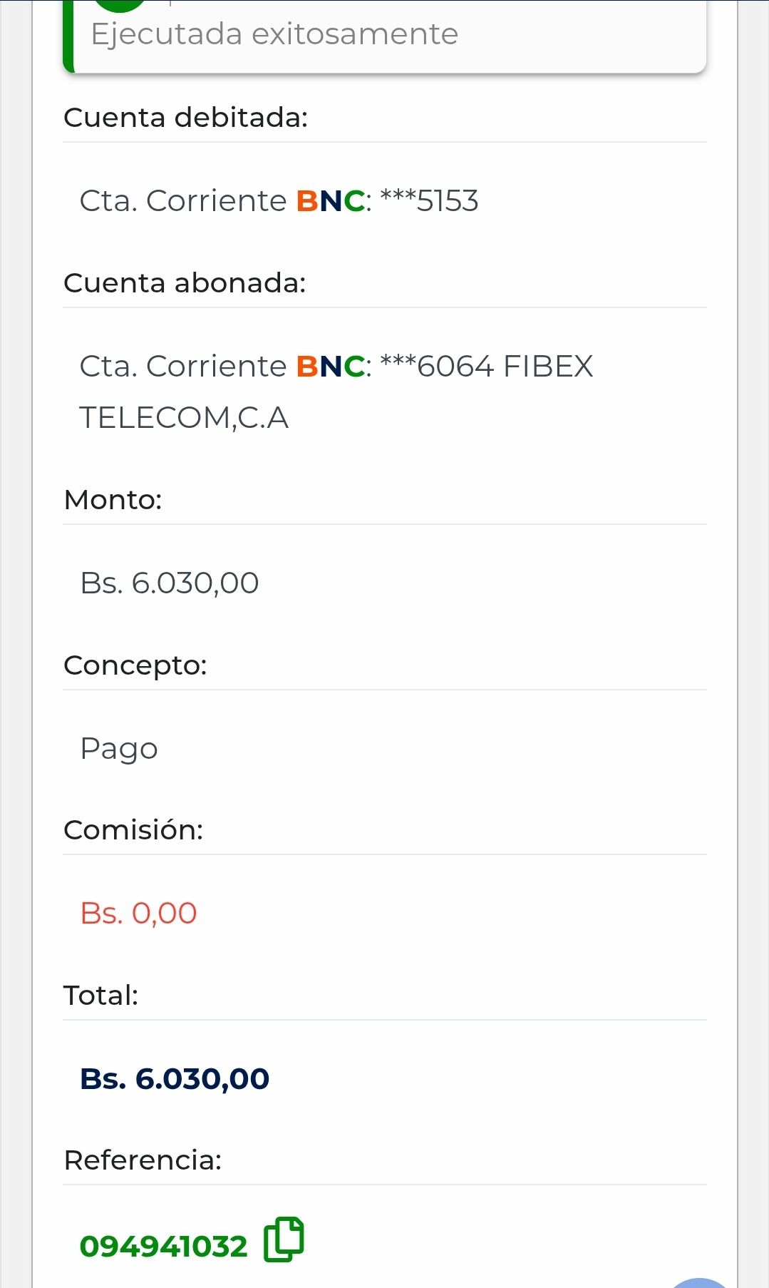 | A64693 | DENNY ALEXANDER GAMEZ TORRES | 2026-01-25 | BNC 6064 | 660915203 | | 2,580.00 BS | 301.37 | REGISTRADO |
