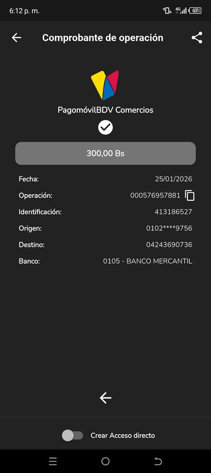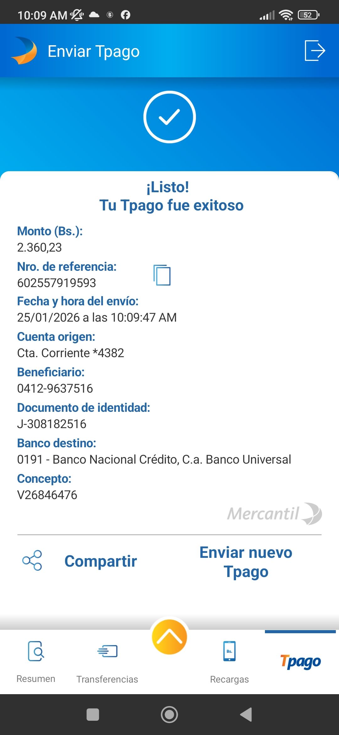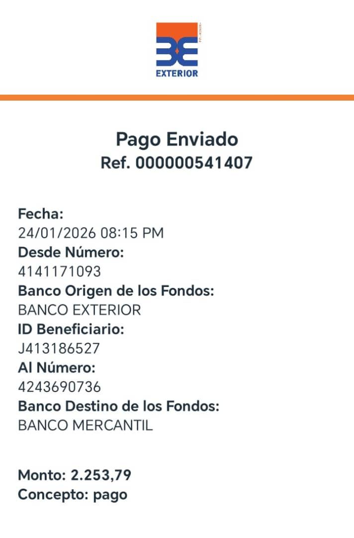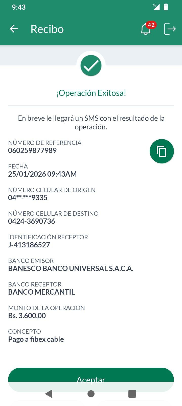 | A74010 | JEANCARLOS JOSE GALÍNDEZ AREVALO | 2026-01-25 | MERCANTIL-4381-ARAGU | 8484902332 | | 2,586.83 BS | 301.37 | REGISTRADO |
