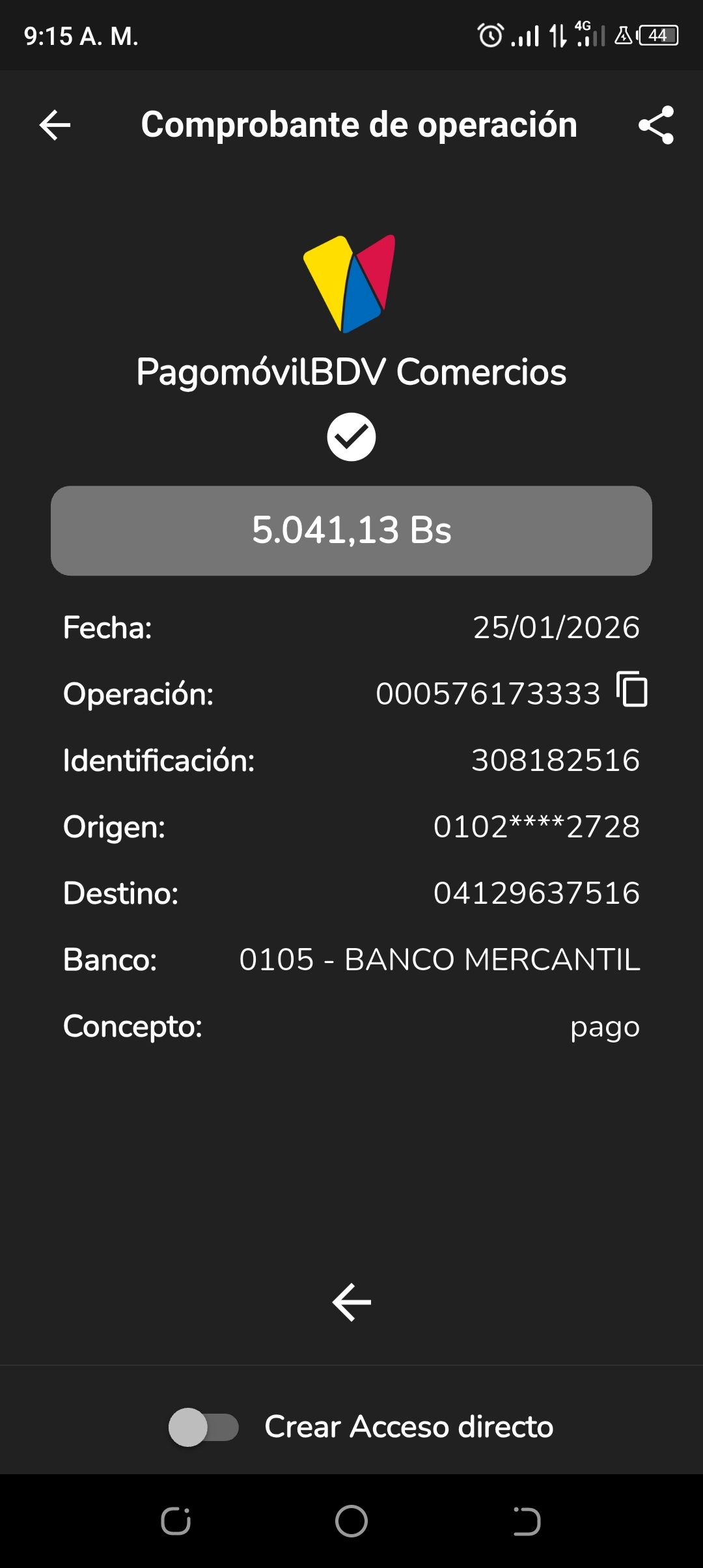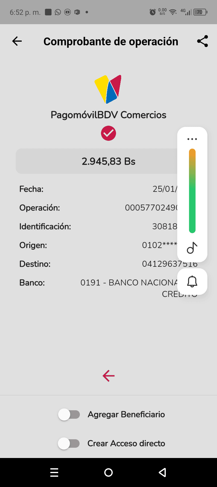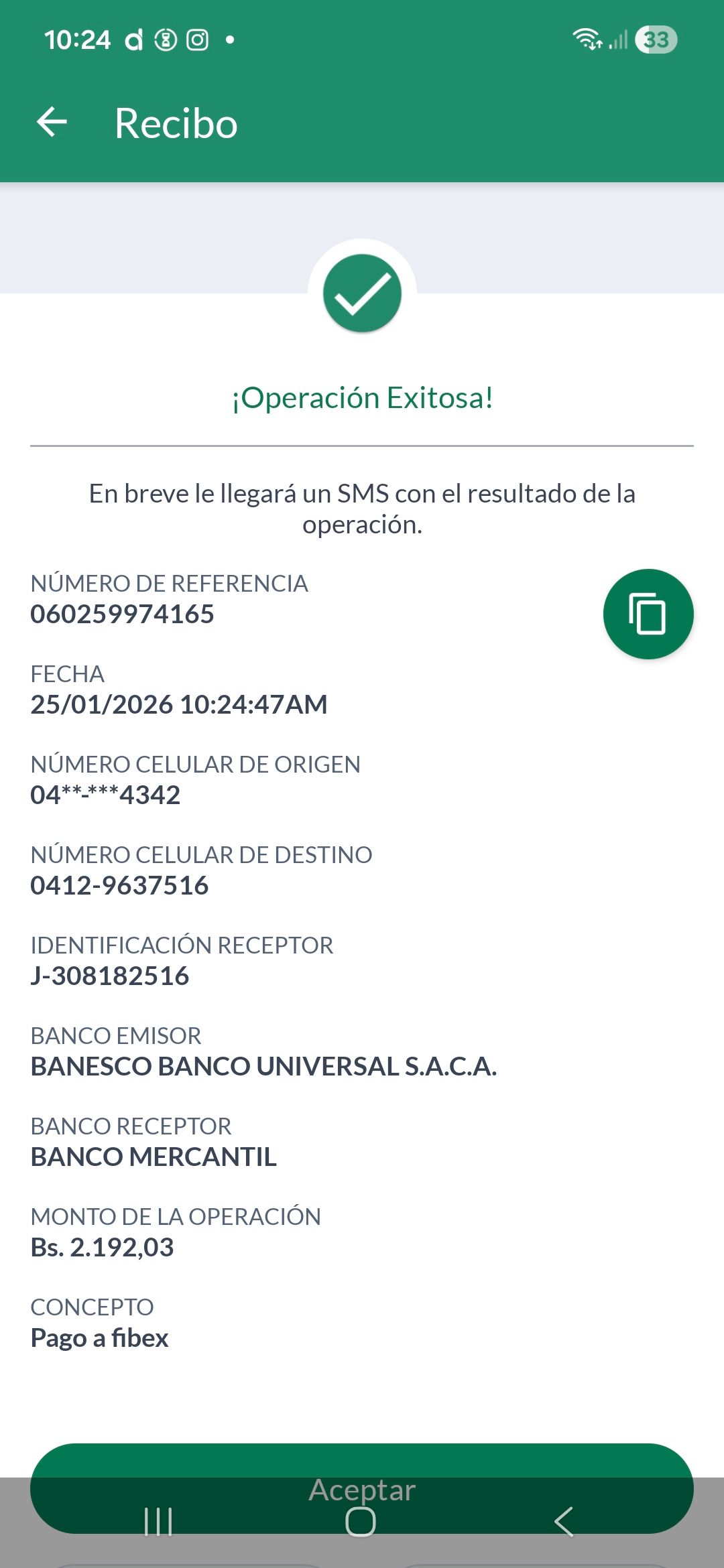 | A74010 | JEANCARLOS JOSE GALÍNDEZ AREVALO | 2026-01-25 | MERCANTIL-4381-ARAGU | 8484902332 | | 2,586.83 BS | 301.37 | REGISTRADO |