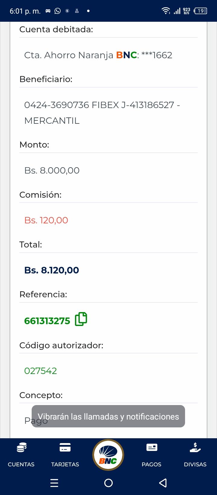 | A21339 | ERNESTO JAVIER ECHARRY SOSA | 2026-01-25 | MERCANTIL-4381-ARAGU | 576167464 | | 3,013.71 BS | 301.37 | REGISTRADO |