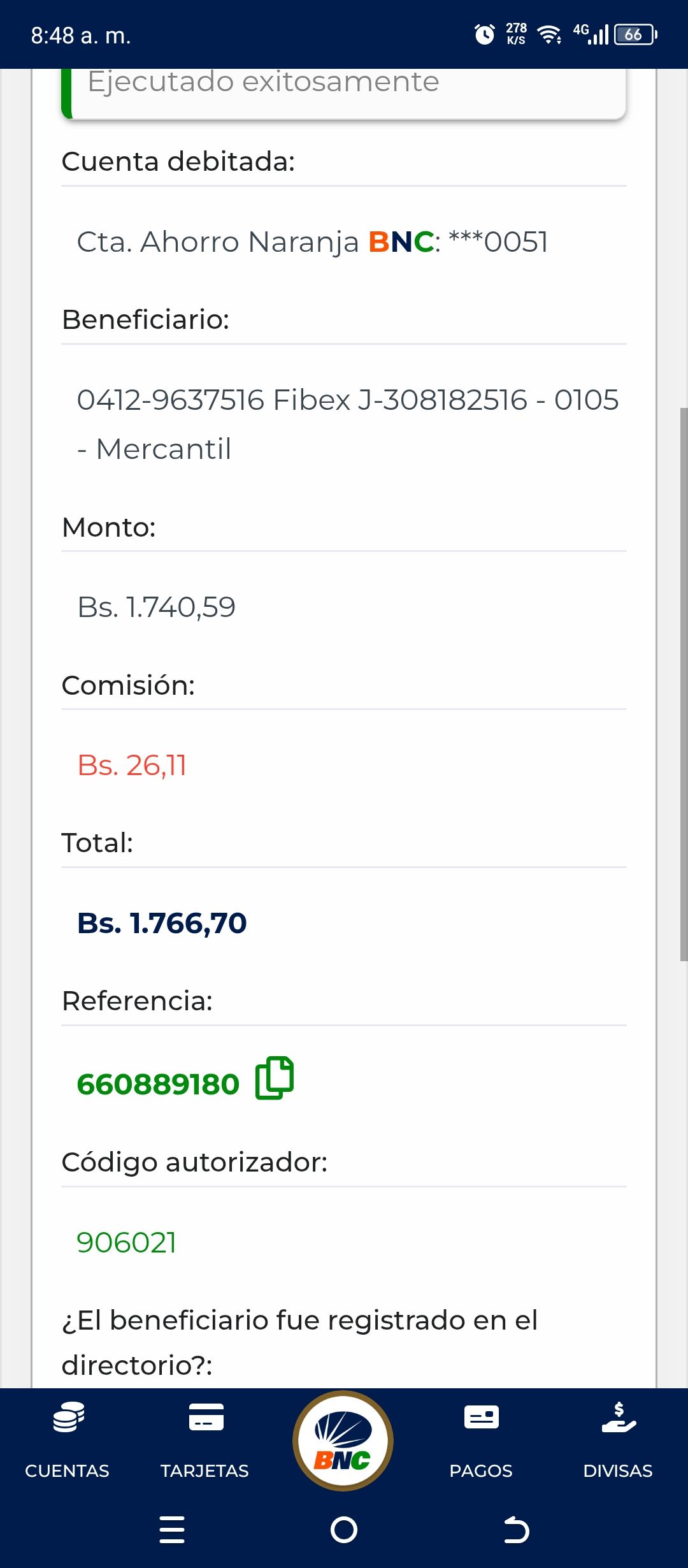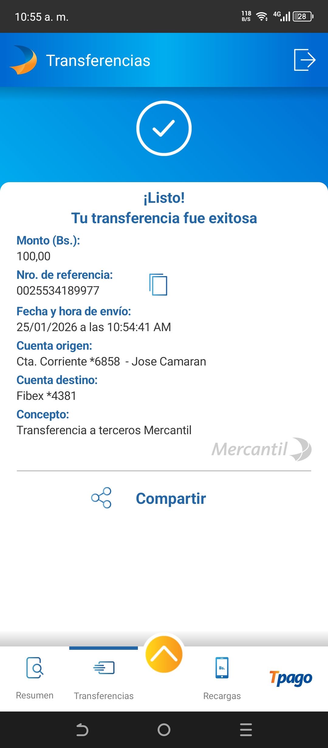| A16320 | CARLOS ALBERTO BLANCO RAMIREZ | 2026-01-25 | MERCANTIL-4381-ARAGU | 370118324753 | | 400.00 BS | 301.37 | REGISTRADO |