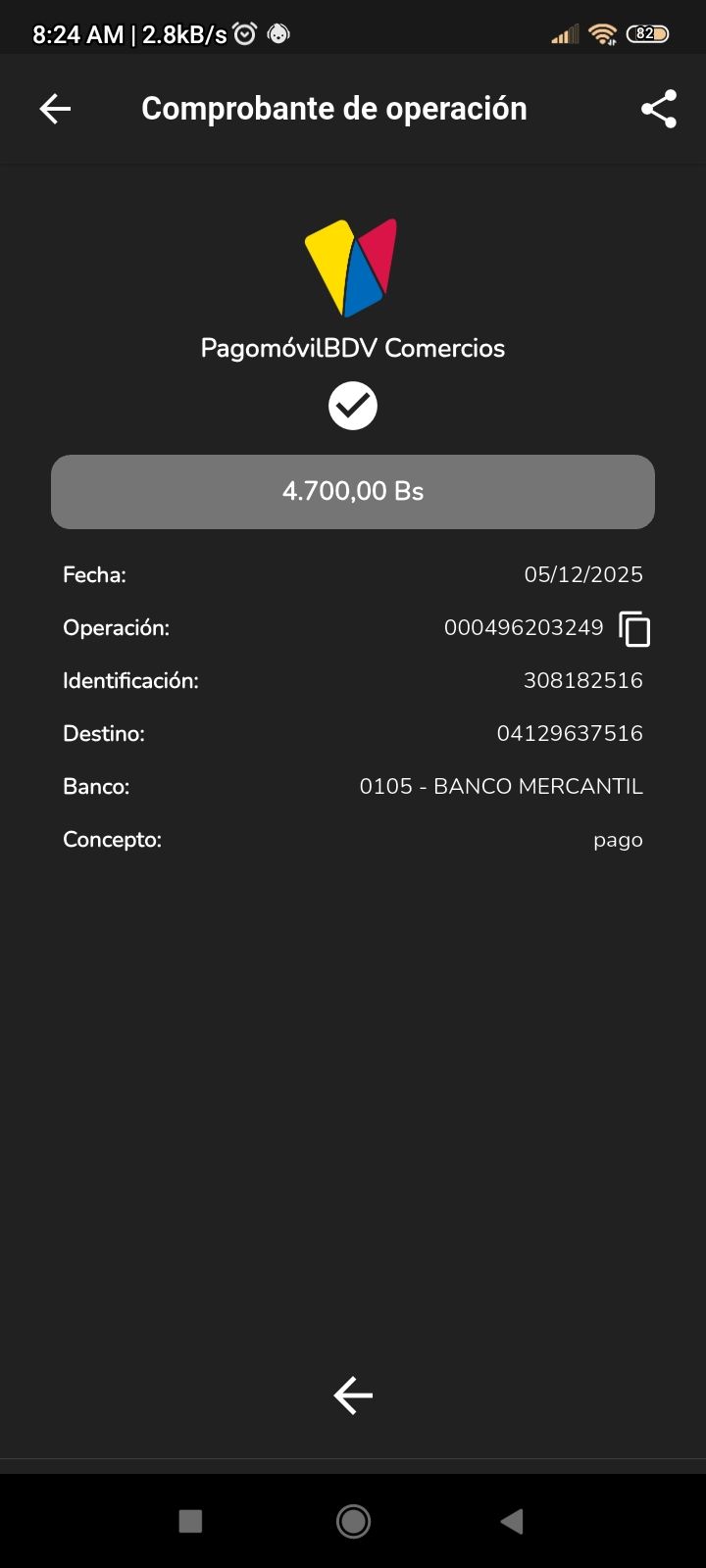 | PTO4508 | JESUS ADRIAN BELTRAN OCHOA | 2025-12-05 | MERCANTIL 2163 | 97592282 | | 7,740.00 BS | 247.30 | REGISTRADO |