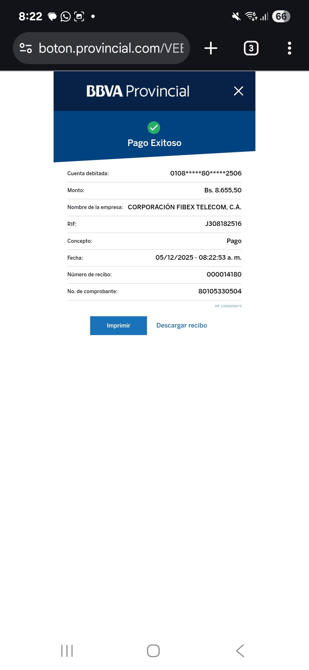 | H8663 | WILLIAM MANUEL MORALES CASTAñEDA | 2025-12-05 | MERCANTIL 2163 | 75011034 | | 9,685.04 BS | 247.30 | REGISTRADO |