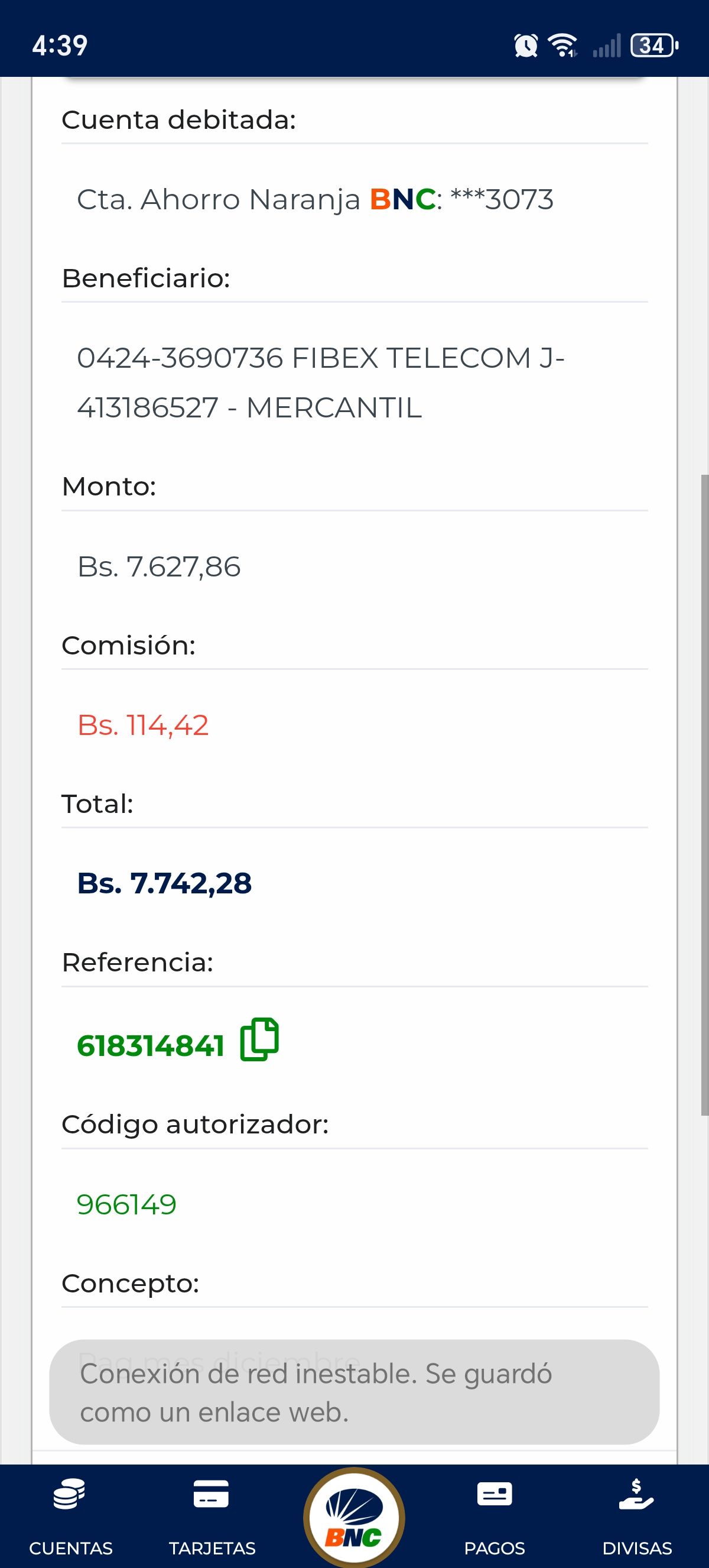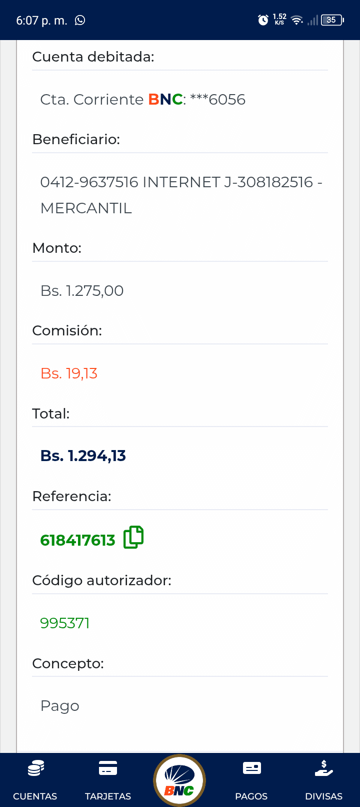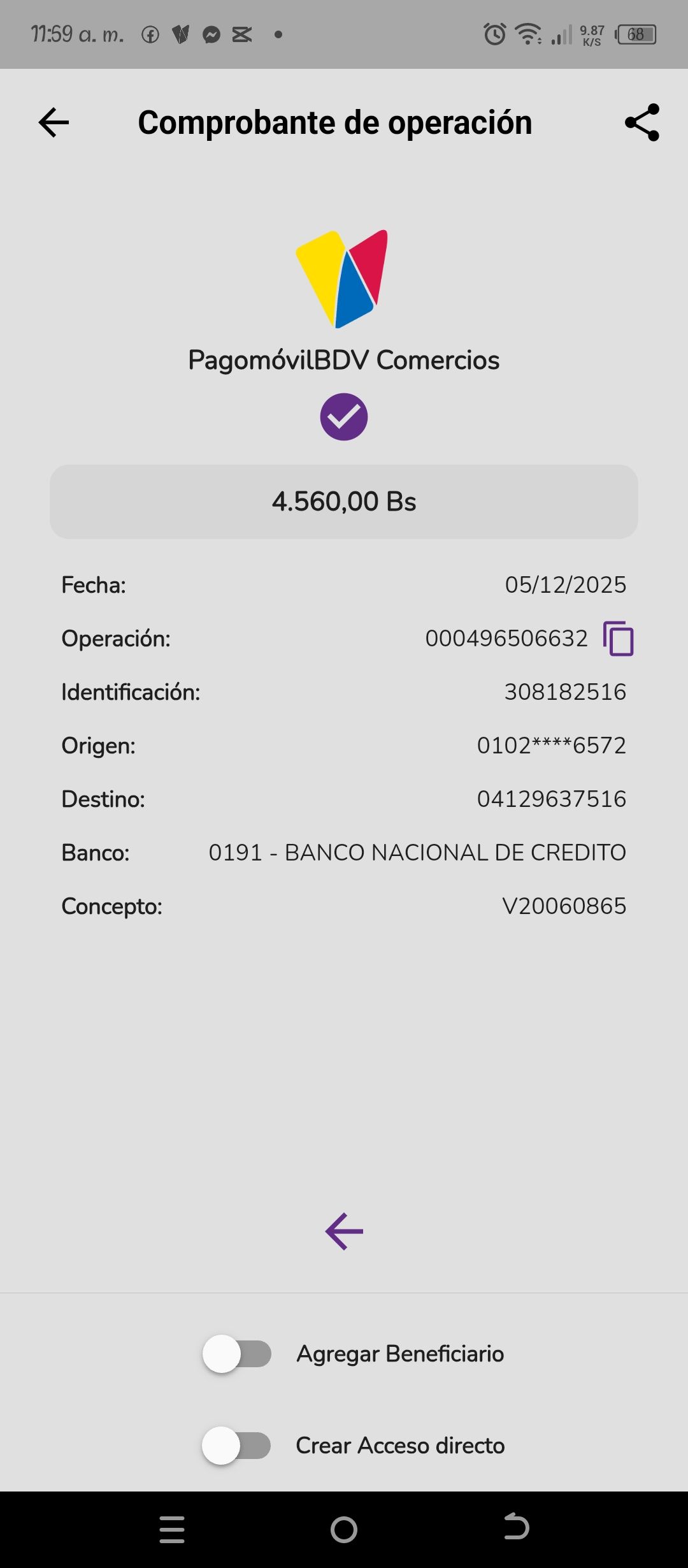 | A35768 | MARIO RAMON LOPEZ AULAR | 2025-12-05 | MERCANTIL-4381-ARAGU | 270940 | | 8,800.00 BS | 247.30 | REGISTRADO |