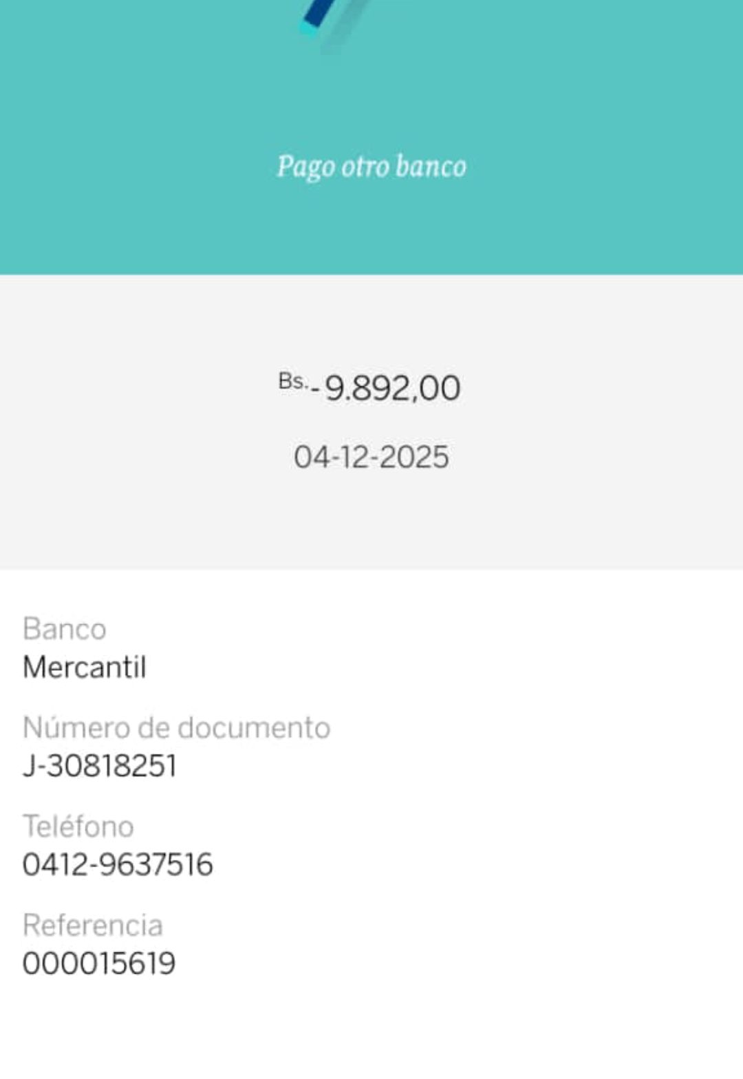 | A12555 | RODNEY DAVID MAZA PEñA | 2025-12-04 | MERCANTIL-4381-ARAGU | 12000155619 | | 9,892.00 BS | 247.30 | REGISTRADO |