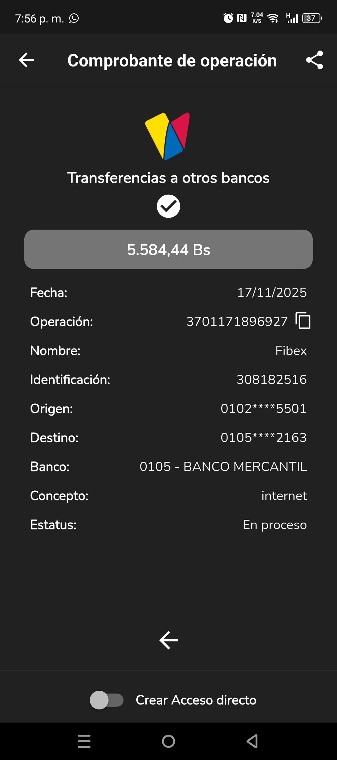 | MAR0370 | PEDRO PABLO HERNANDEZ OVIEDO | 2025-11-22 | MERCANTIL 2163 | 92552535 | | 3,918.00 BS | 223.96 | REGISTRADO |